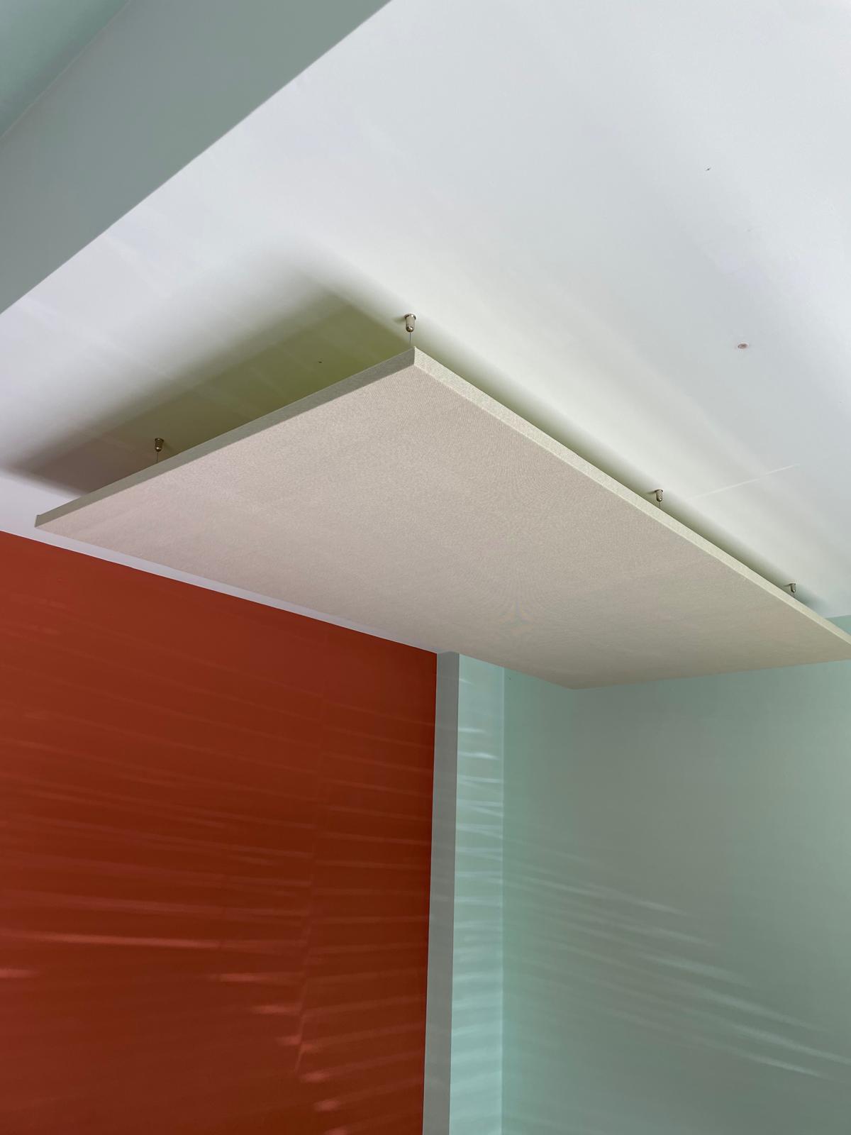 - The panels are installed using a wide range of fasteners depending on requirements: on walls with springs to be screwed onto the panel, or suspended from the ceiling using steel tie rods.