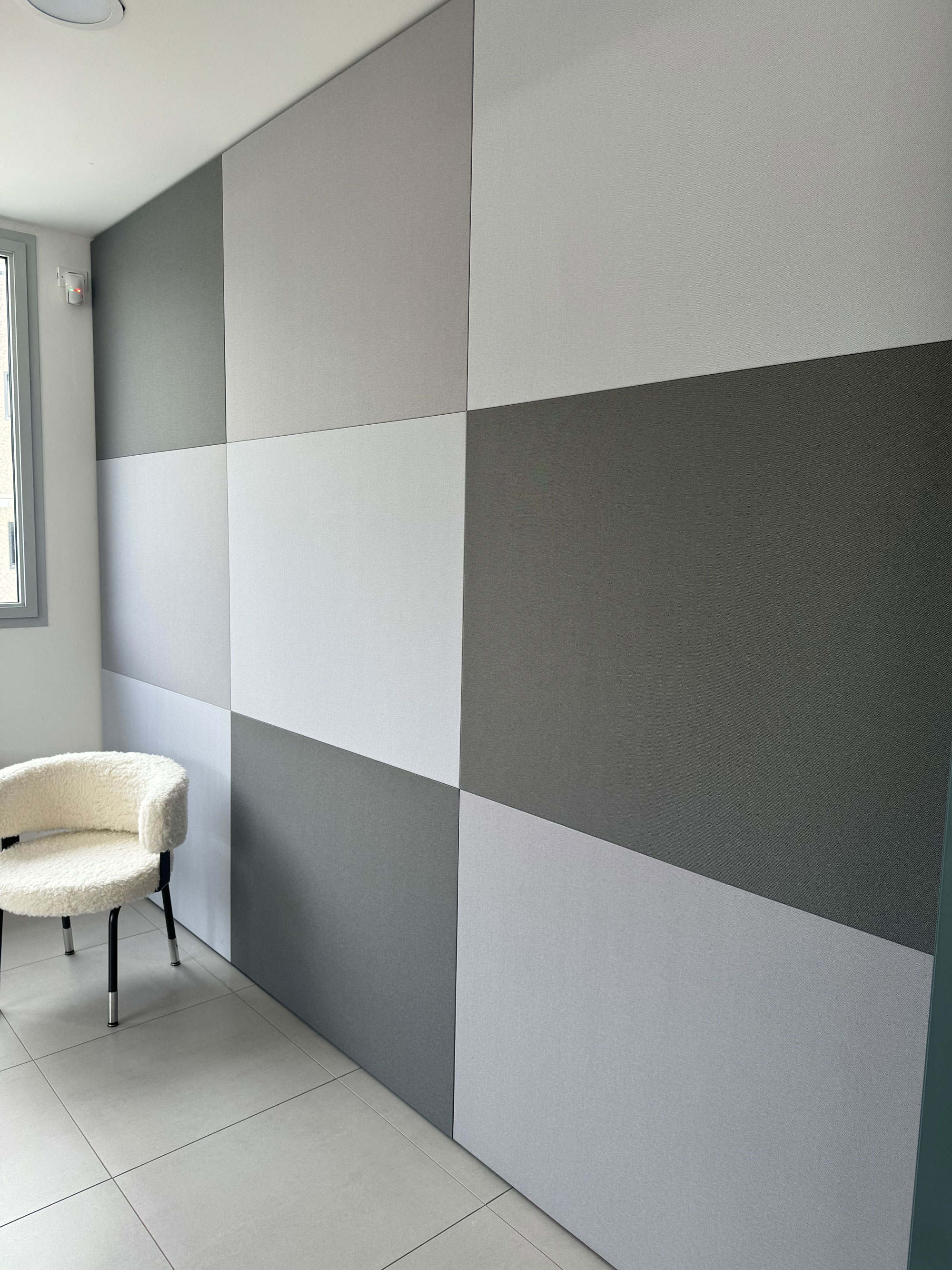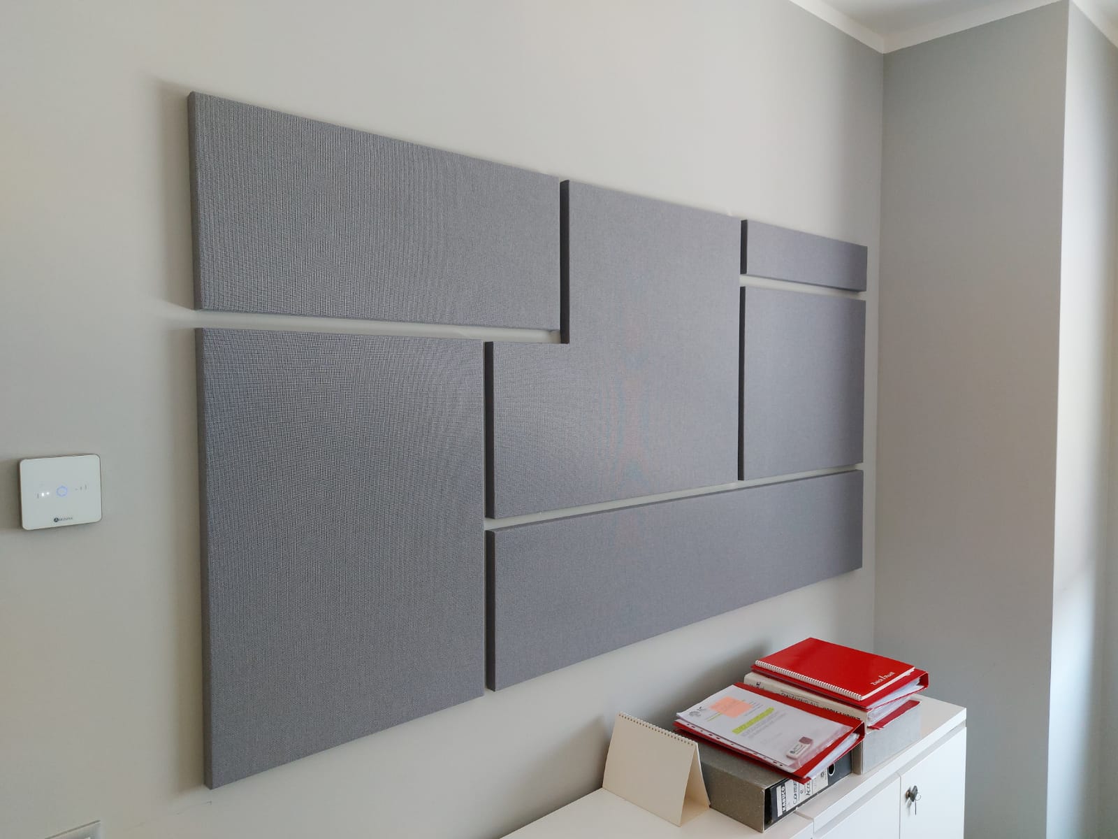 - Sound-absorbing panels covered in 100% recycled polyester fabric, with color of choice from the catalog.