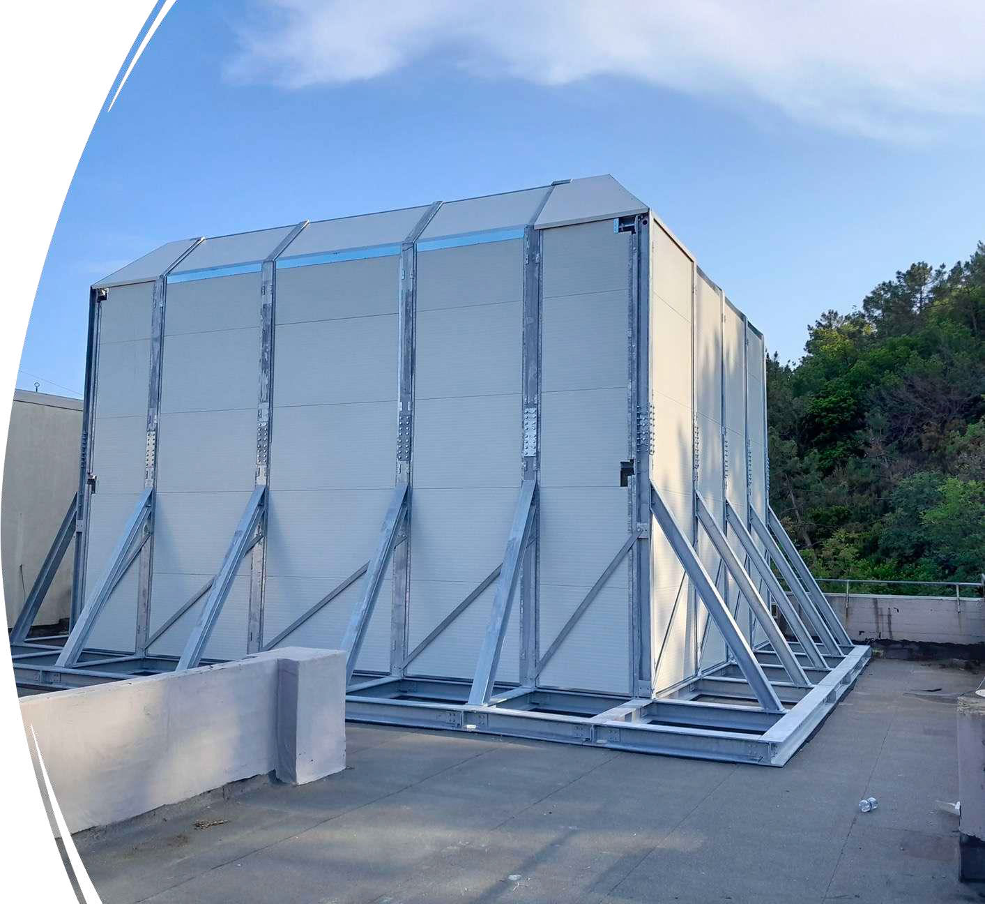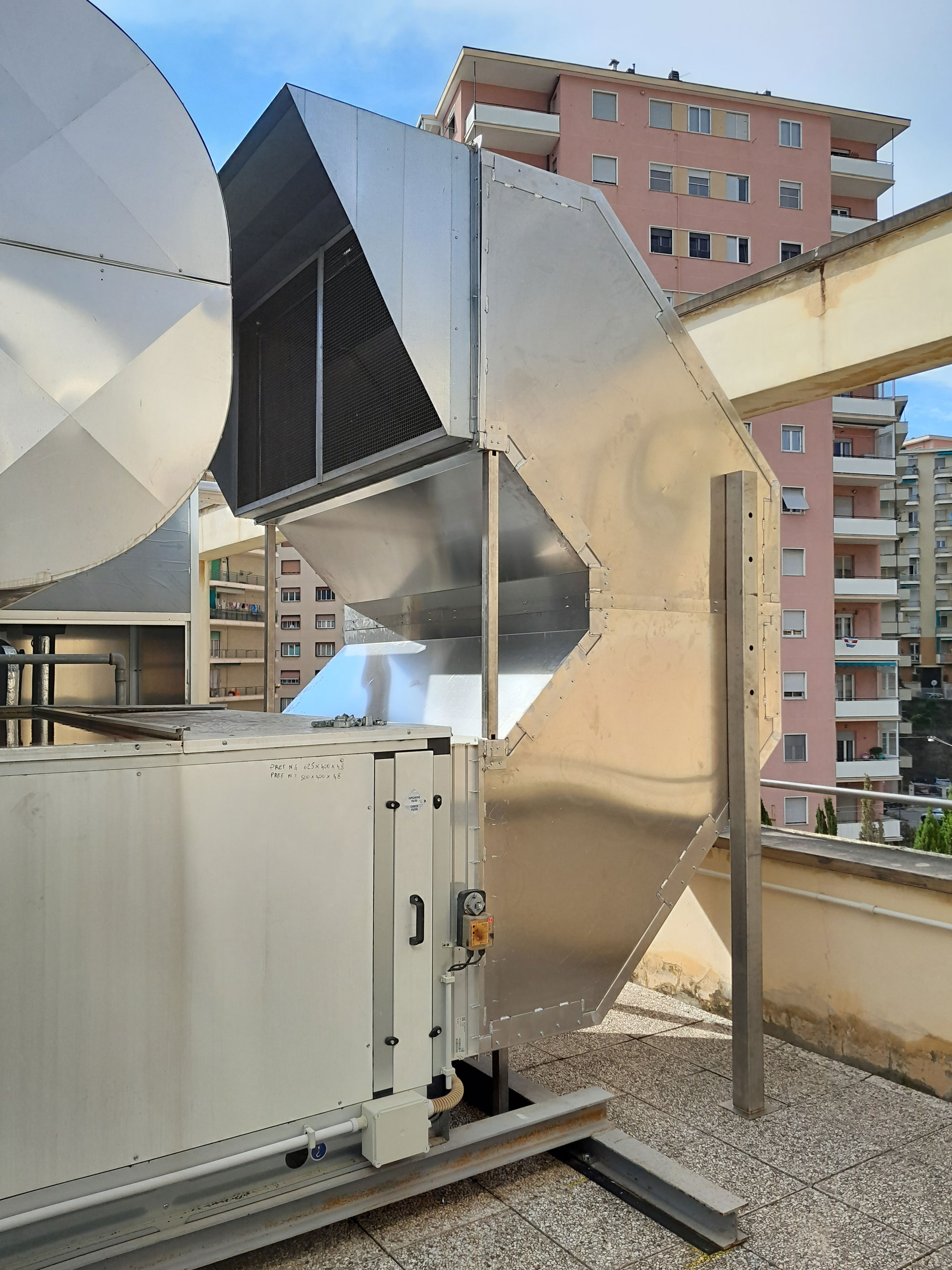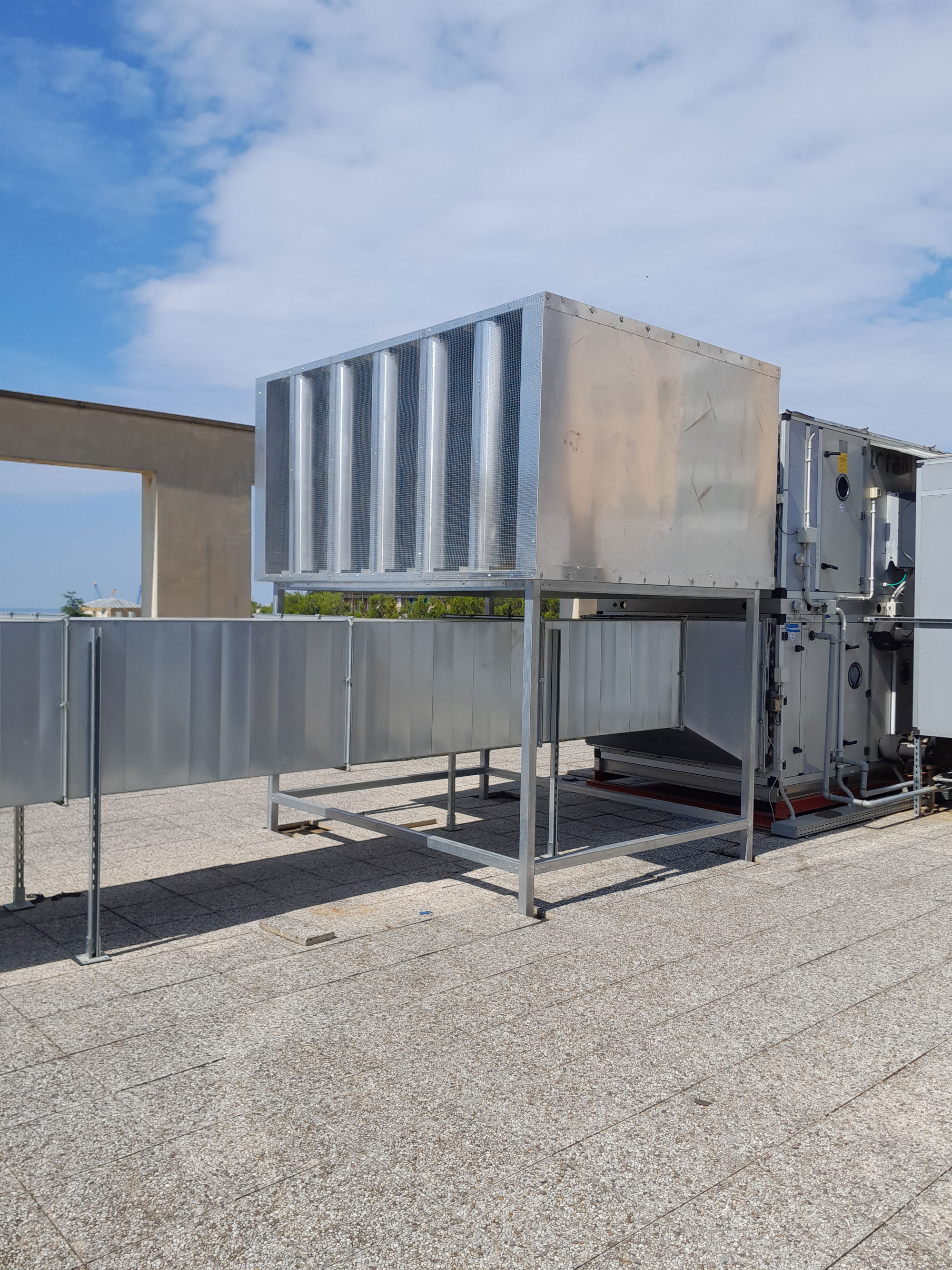 - Supporting structure in galvanized sheet metal, stainless steel, or aluminum, with thicknesses varying according to dimensions and operating conditions.