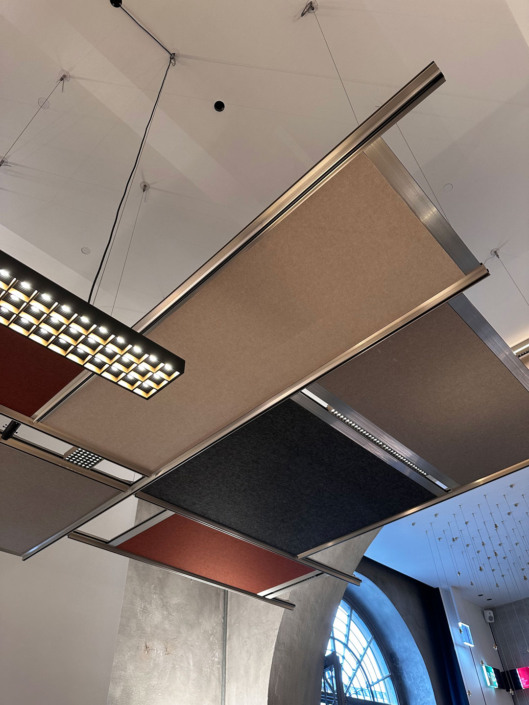 Tecnofil HD sound-absorbing panels are ideal for correcting reverberation in rooms with different uses: offices, meeting rooms, lobbies, reception areas, waiting rooms, bars, restaurants, etc.