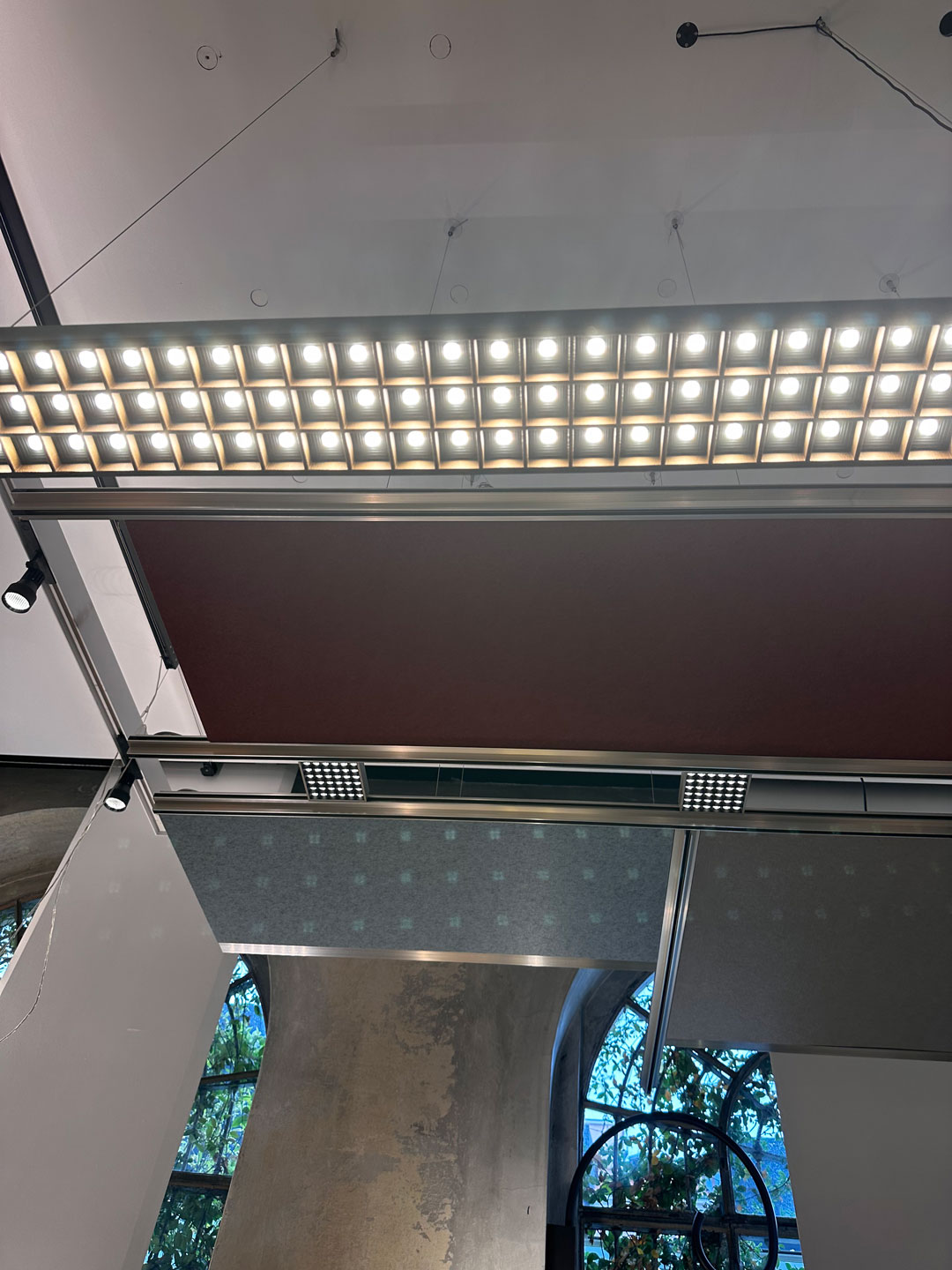 - The panels are installed using a wide range of fasteners depending on requirements: on walls with springs to be screwed onto the panel, on ceilings they can be suspended using steel tie rods (suspension kit) or other custom-made fastening systems.