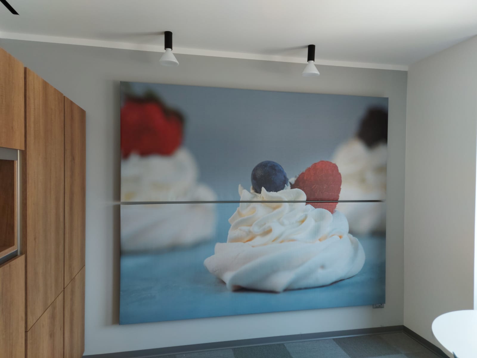 - Printable panels with images or company logos. High quality print on polyester or PVC fabric, on all visible surfaces of the panel.